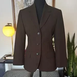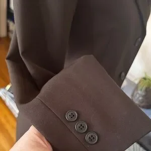 Sophisticated dark brown blazer. Ideal for both office and casual wear. Features a tailored fit and button closure.