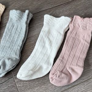 Vibrant Color Options: Brighten up baby girl outfits with our colorful knee high socks that come in White, Black, Gray, Tan, and Pink. These socks offer both style and warmth, making them a wardrobe essential for your newborn girl