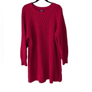 Lands End Red Midi Holiday Valentine's Day Cable Knit Sweater Dress Size 2X