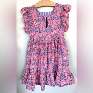 Pink Chicken NY 4Y Elsie Dress Ruffle Flutter Twirl Pink Blue Floral Ferns 4T