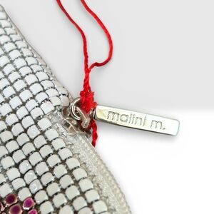 Malini M. Vintage White Metal Mesh Polka Dot Shoulder Bag w Matching glass case