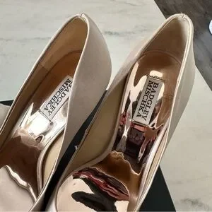 BADGLEY MISCHKA Cher Crystal Buckle Pumps Satin