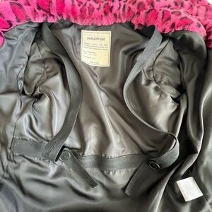 Zadig & Voltaire's faux fur leopard print coat blends chic style with utility. Made from high-quality materials, offering comfort and elegance.