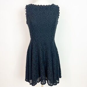 City studio black eyelet lace sleeveless fit and flare dress.