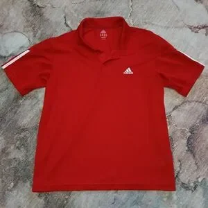 Brighten up your wardrobe with this vibrant red polo shirt from Adidas. Perfect for any occasion, this shirt combines comfort and style effortlessly.