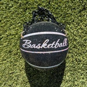 NEW Black Rhinestone Embellished Basketball Design Women's Bag