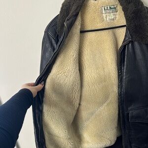 Vintage L.L. Bean Leather Bomber Jacket with Shearling Lining & Collar