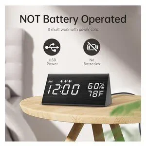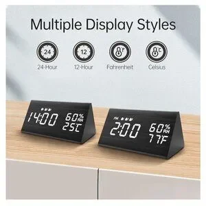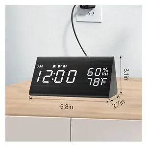 Digital Alarm Clock, with Wooden Electronic LED Time Display, 3 Alarm Settings, Humidity & Temperature Detect