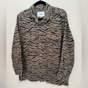 Pistola Tiger Utility Shirt Jacket Medium Animal Print Frayed Hem Anthropologie