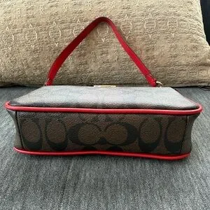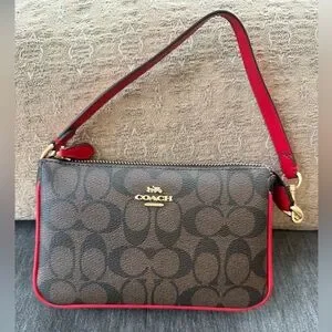 Coach Signature Brown and Red Two Way Wristlet/Handbag