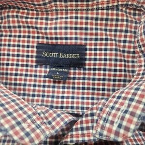 Scott Barber Large red blue check button down shirt. 100% cotton classic tailored style.