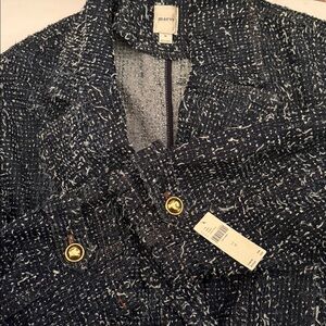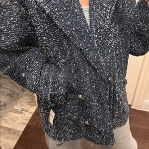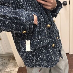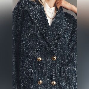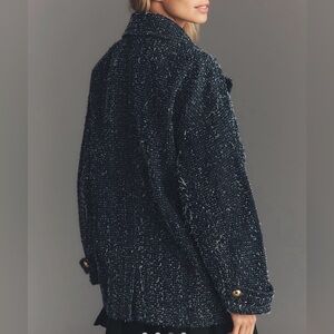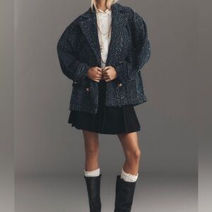 NEW NWT Anthropologie Denim Tweed Needle punched Double Breasted Coat blazer