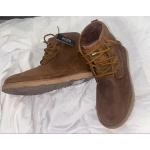 New w/Tags UGG Men’s 10 Outdoor Luxe Waterproof Leather Fleece Lined Distressed Brown Harkley Winter Boots Your favorite lace-up boot now incorporates waterproof features to help keep you looking better for longer.