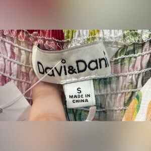 This dress by Davi & Dani features a tiered pattern with alternating fabric designs. It is sleeveless and has a tie fasten front. This dress is new with tags and is by Davi & Dani.