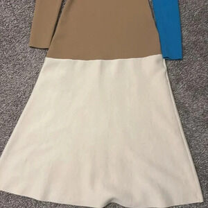 Diane von Furstenberg dress in color blocked knit.