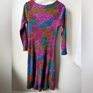 FARM RIO Rainbow Mix Jersey Midi Dress Cat Lover Maximalist Colorful Bold L