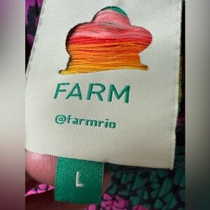 This is a rainbow mix jersey midi dress by Farm Rio in a size large. If you look closely you’ll see it is a cat print!! Perfect for a cat lover. Bold bright colorful. Perfect for a maximalist. As with all farm Rio it gives a tropical vacation feel. Cotton and elastane. Machine wash. Excellent condition with no known flaws.