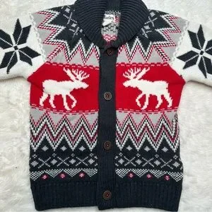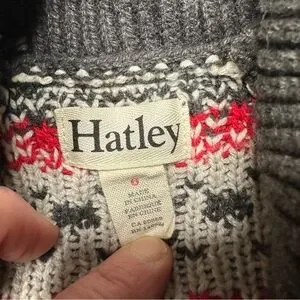 Hatley Sweater Buttoned Festive Red/White/Grey Size 6