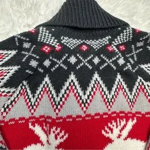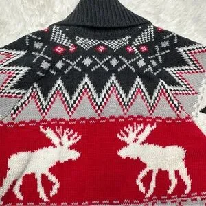 Embrace warmth and style with this festive Nordic pattern cardigan type sweater Featuring a striking black, red, and white design, it's perfect for any winter occasion.