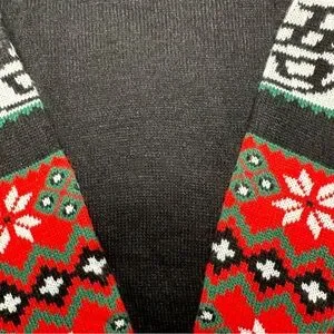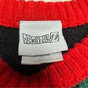 Celebrate the season with this Dragon Ball Z sweater. Vibrant red, green, white, and black pattern. Ideal for cozy, festive wear.