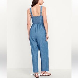 Old Navy Blue Denim Jumpsuit with Gold Buttons