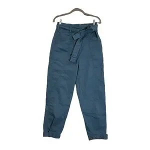 ANTHROPOLOGIE Ellie Belted Utility Pants Embroidered Blue Size 4