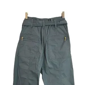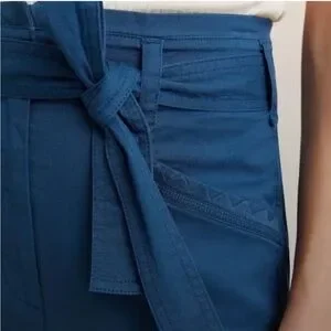 ANTHROPOLOGIE Ellie Belted Utility Pants Embroidered Blue. Size 4