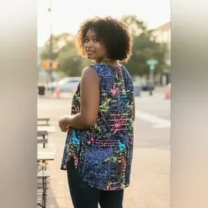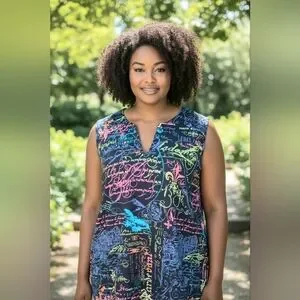 Anthony's Resort Wear Chic Multicolor Script Women's Blouse