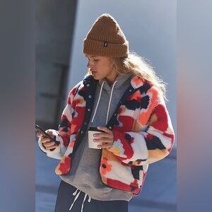 NWT FREE PEOPLE MOVEMENT Hit The Slopes Printed Fleece Jacket | Coral Carpet