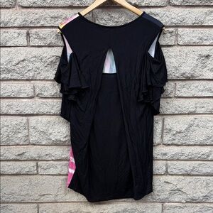 Simon Chang Multicolor Abstract Short Sleeve Top