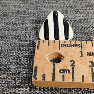 Vintage 80s style triangle earrings, black and white striped pattern. Enamel or painted metal finish. Great condition, approx. 1 inch.