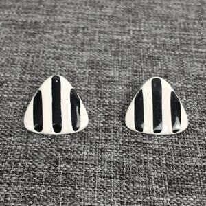 Black & White Striped Triangle Earrings Vintage 80s style Retro Pierced Ears