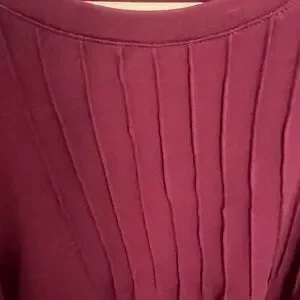 This elegant burgundy Knit top is perfect for any occasion. Its rich color & vertical lines at neck line adds a touch of sophistication to your wardrobe.