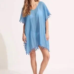 Seafolly Amnesia Kaftan in the Azure color (soft blue) and is made from 100% cotton gauze.