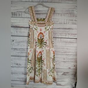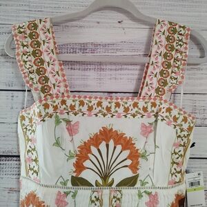 CeCe Print Pintuck Sleeveless Midi Dress Square Neck Size 4 NWT