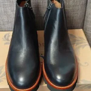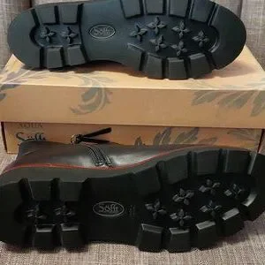 Sofft Women's Black Ankle Zip Boots with Brown Trim Size 8.5