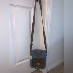 L. L. Bean Utility Crossbody Blue Brown Canvas Bag
