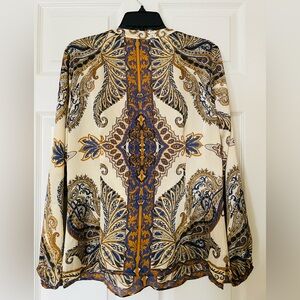 Cache Cream and Blue Paisley Blouse