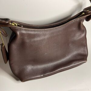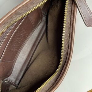 Elegant brown leather bag. Features gold-tone hardware. Classic and versatile design.