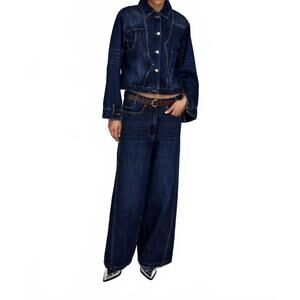 - Description: Meet the Lane Patchwork Denim Wide Leg Pants by Rabens Saloner, an essential for any denim lover's wardrobe. These pants come in a sophisticated dark washed indigo solid pattern, designed with a regular/mid-rise waist and belt loops for a comfortable fit. Crafted with a zip closure and adorned with small side and back pockets, these pants feature long wide legs with a chic balloon effect. Care instructions include machine washing and the convenience of tumble drying, making them perfect for minimalist spring outings like a dinner party.