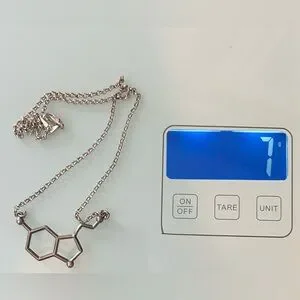 18” Sterling Silver Seratonin Molecule Necklace. Necklace is quite light and easy to wear, in excellent used condition. Please see photos for full details. Comes from smoke and pet-free home. Feel free to ask questions!