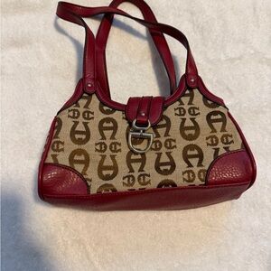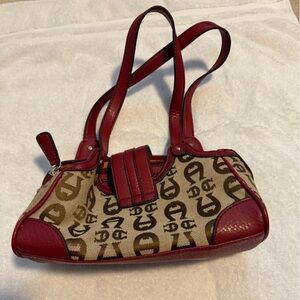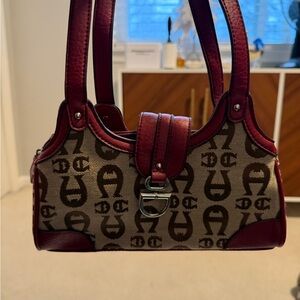 Etienne Aigner Burgundy and Brown Monogram Mini Shoulder Bag