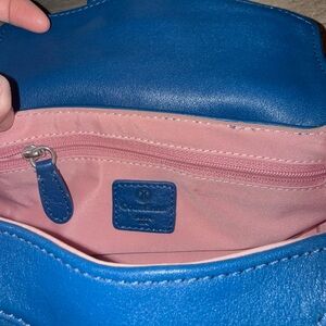 Stylish leather bag. Features silver hardware and dual straps. Ideal for versatile use.