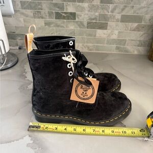 Stylish black lace-up boots. Iconic Crushed Velvet , Dr. Martens design. Durable and trendy. NEW WITH TAGS