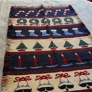 New Carpet Throw Christmas With fringe Hem Holidays Decor Vintage