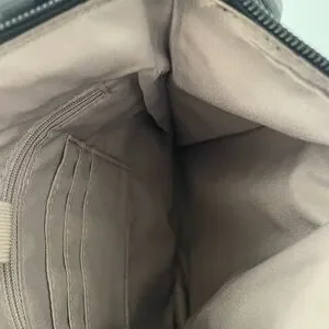 Top zip to large main compartment with zip pocket, 3 card slots and pen loop