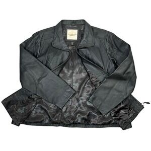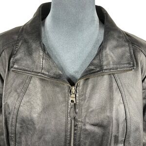 Genuine Leather Jacket Plus 16-18W Black Full Zip Lined Minimalist Patina Retro