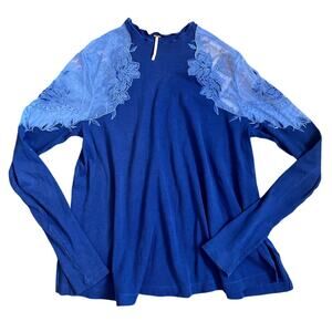 Free People Daniella Blue Crochet Lace Long Sleeve Top Boho Size Small
