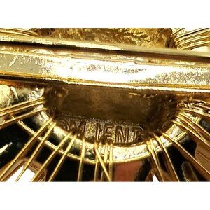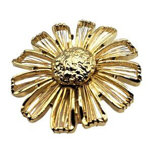 Signed M Jent, this gold tone wire work flower is sure to brighten your day! It is constructed with a heavier duty frame and the petals are thin gold wires. It measures 2 1/8" across and is in great condition!