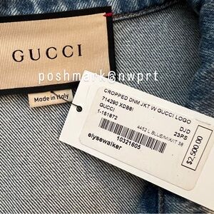 NWT ⚡️ GUCCI Denim Jacket Bolt Graphic Logo Cropped Blue Jean 38 XS S 0 2 4